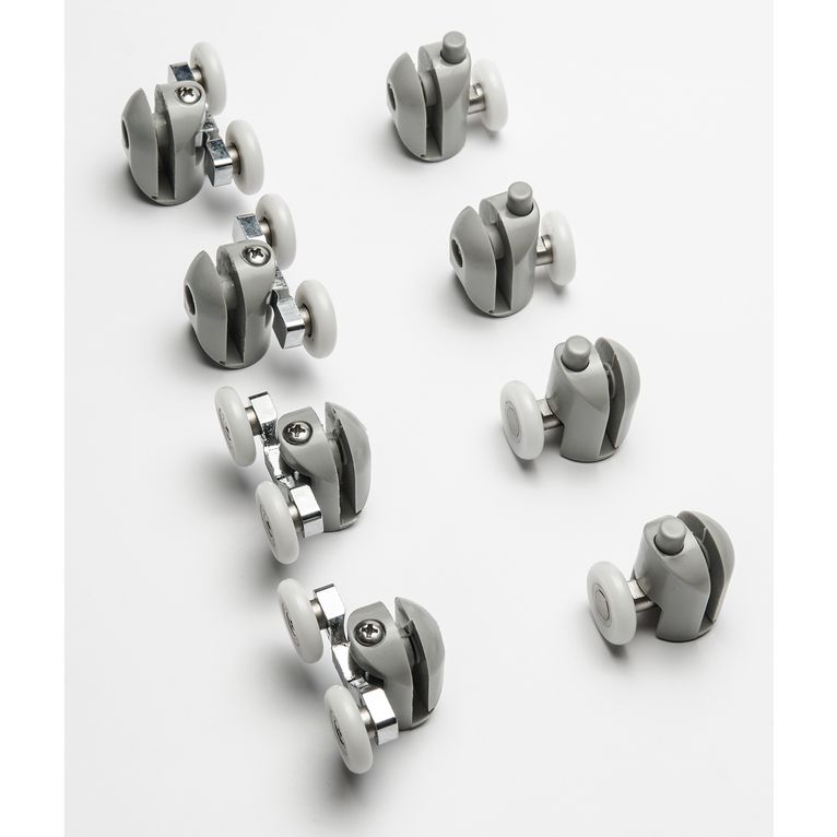 - Sistema di apertura anta scorrevole su binari con cuscinetti tandem che permettono di sganciare il vetro facilitando la pulizia